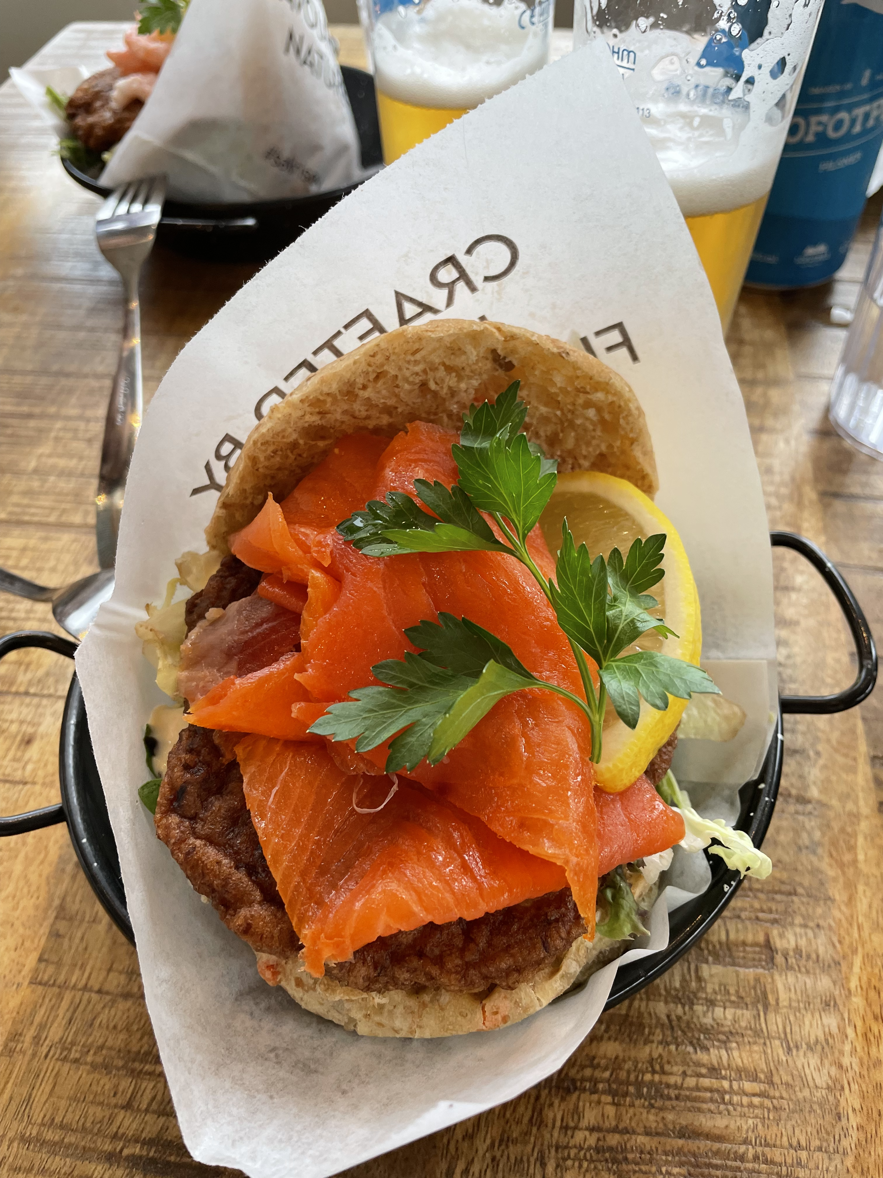 Eat the best cinnamon bun and the best fish burger in the area