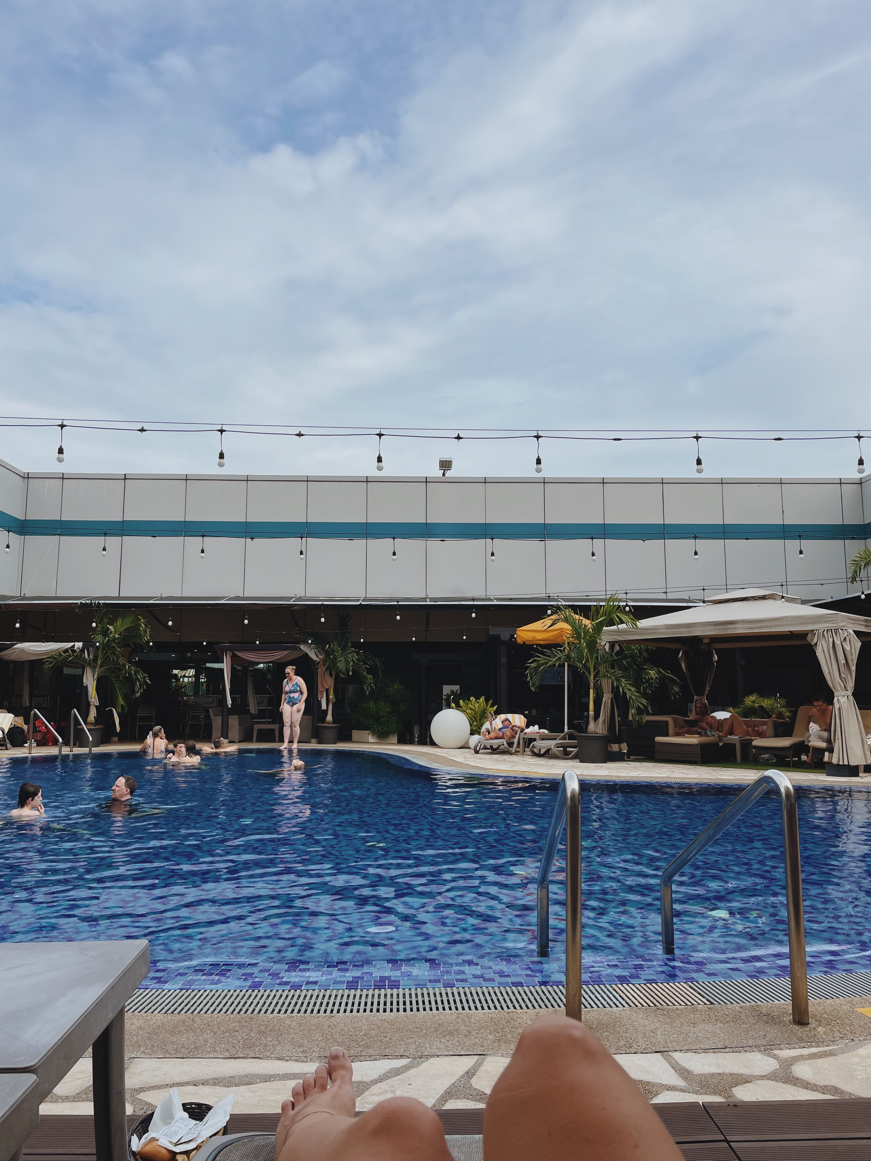 Located at the Singapore Airport transit hotel in Terminal 1, you pay an entrance fee of about 18 Singapore dollars and can stay as long as you want to enjoy some sun and refresh yourself before your flight.